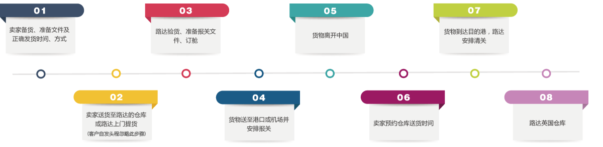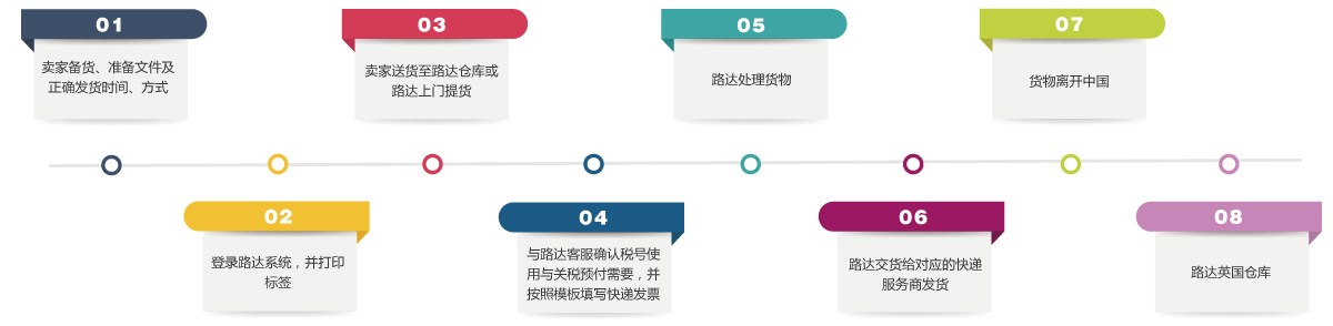 清关时,可使用客户自有的VAT账号进行清关。如果客户没有英国VAT账号,路达英国也可以提供“英国VAT账号注册”增值服务。关于VAT账号注册请查看“增值服务-英国VAT注册”服务。